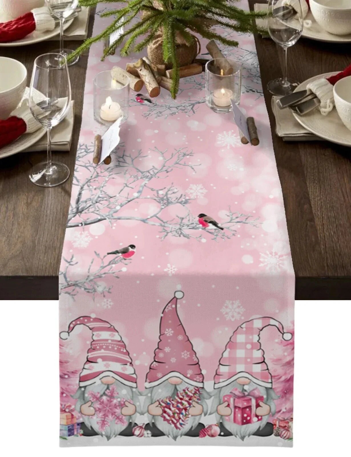 Christmas Gnome Snow Scenery Linen Table Runners Winter Dining Table Decor & Decorations 180x33cm 70.8x13inch