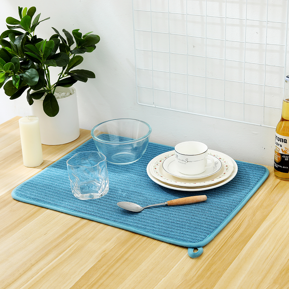 30x40 38x50CM Striped Pattern Microfiber Dish Drying Mat Absorbent Kitchen Placemat & Cushion Pad Blue 38x50cm