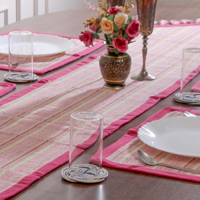 Pastel Stripes,'Striped Cotton Jacquard Table Runner Placemat Set (5 Pieces)'