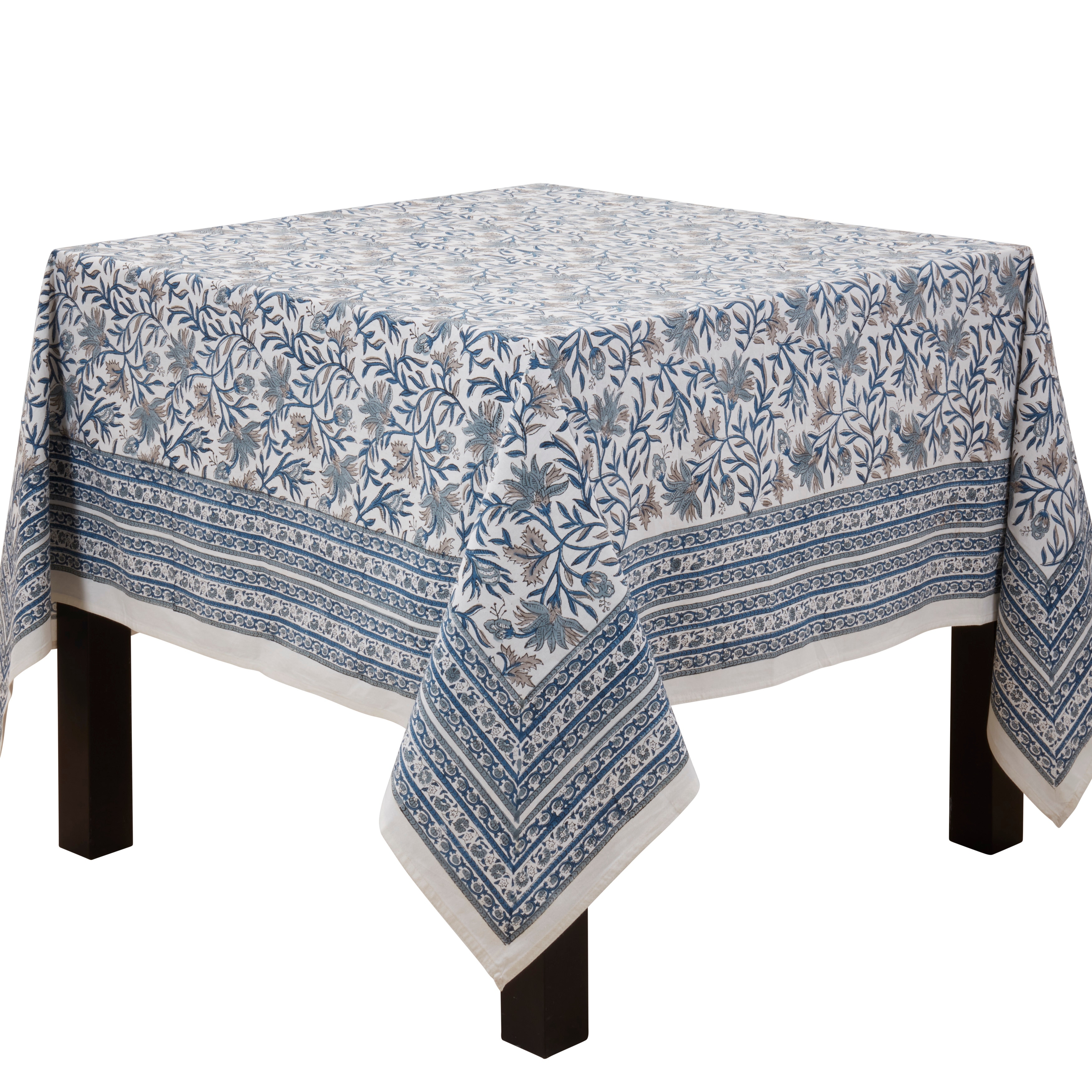 Regal Block Print Cotton Dabu Floral Tablecloth Collection