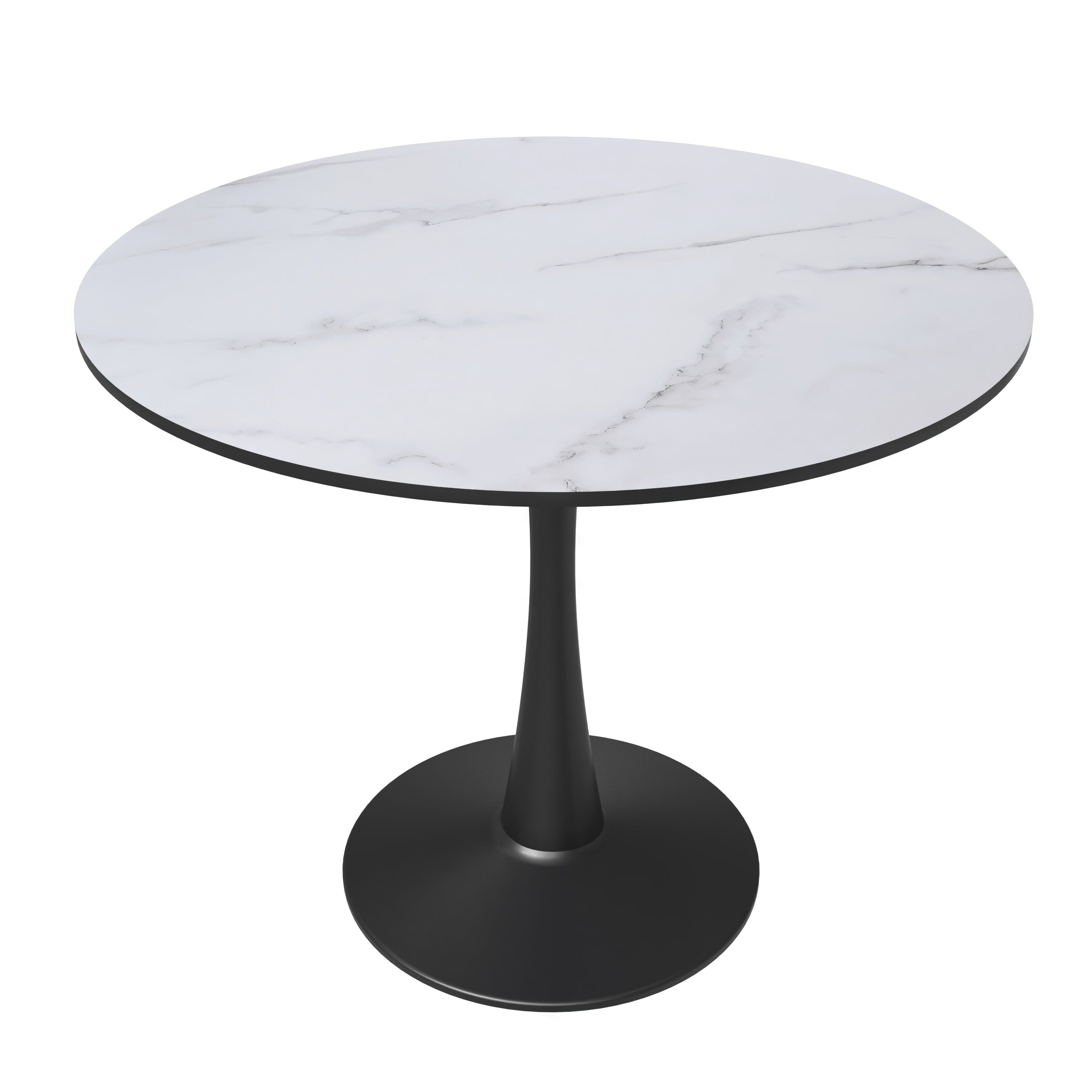 47" Round Marble Dining Table, Modern Kitchen Table with High Gloss Faux Marble Tabletop and Stainless Steel Base