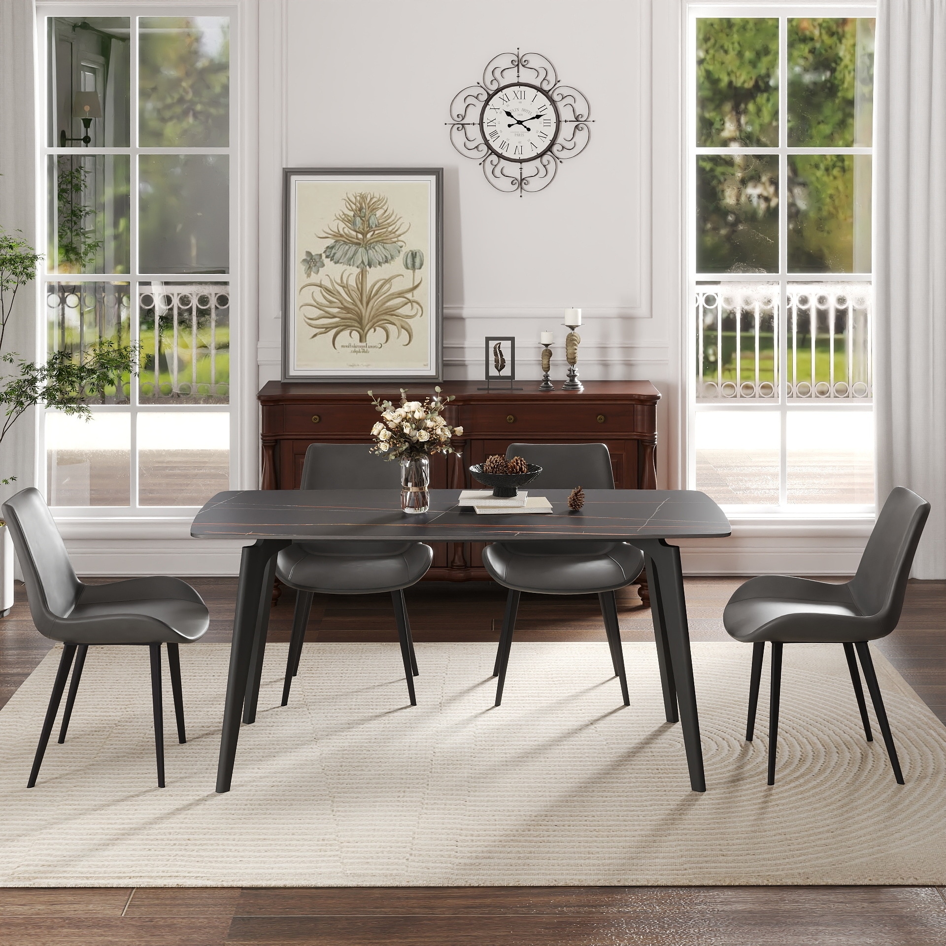 Modern Faux Marble Dining Table With Geometric Legs
