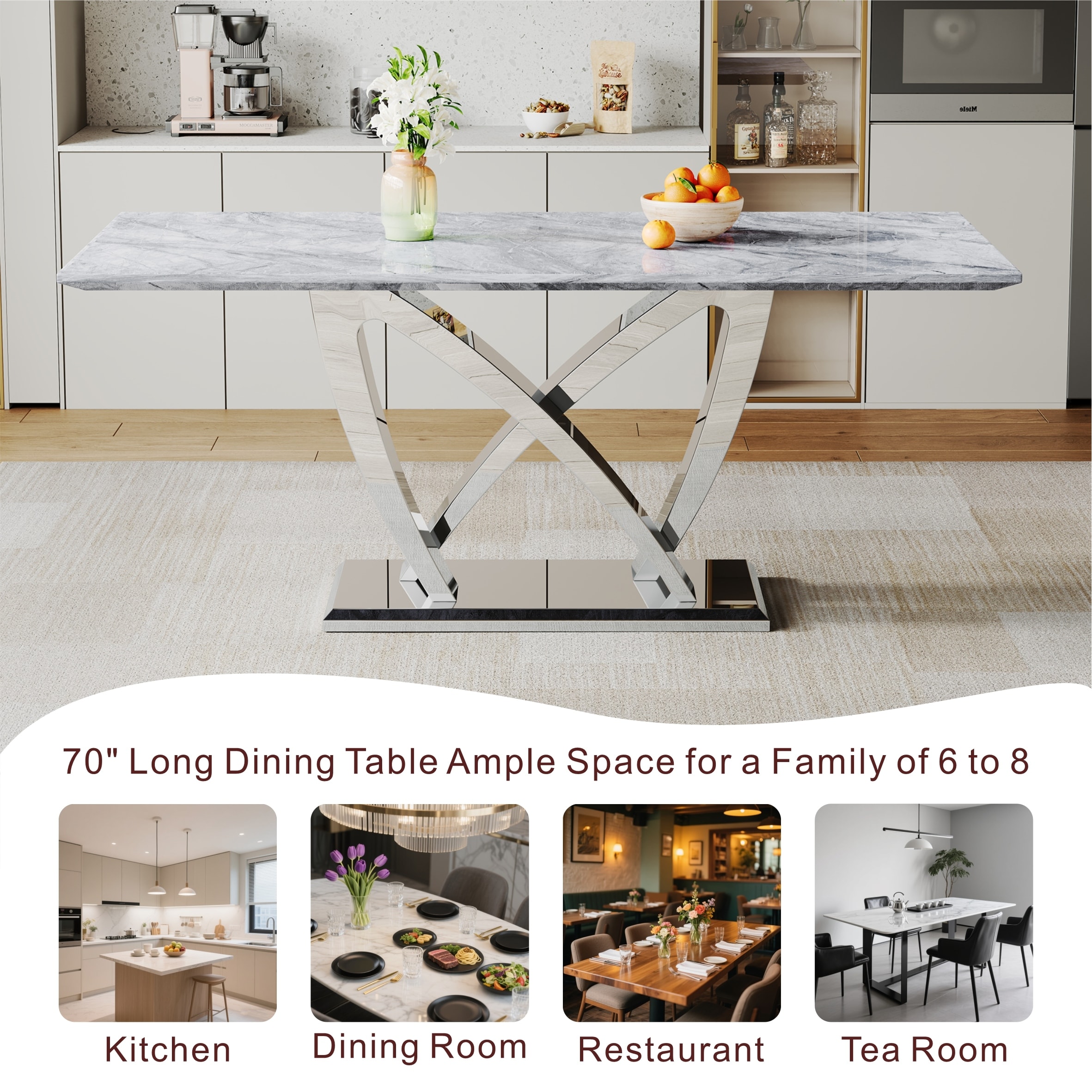 Large Rectangle Faux Marble Dining Table For Six With Mirrored Base
