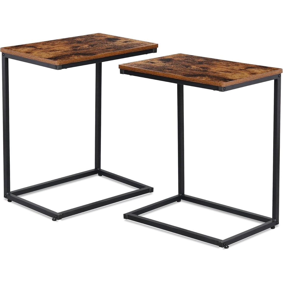 C-Shaped Side Table Set of 2, Small End Tables for Living Room or Bedroom, 21.7" W, Rustic Brown & Black