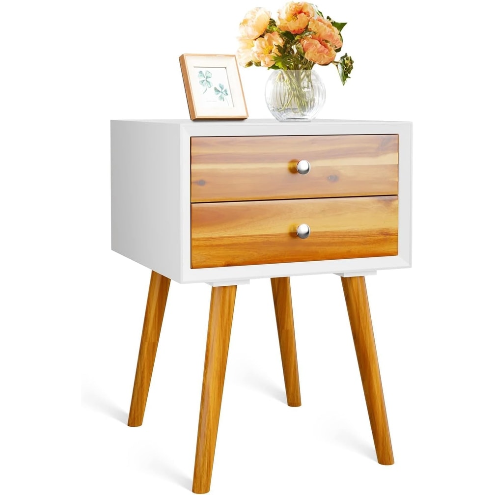 23.5" 2-Drawer Nightstand, Wood Side Table for Living Room or Bedroom