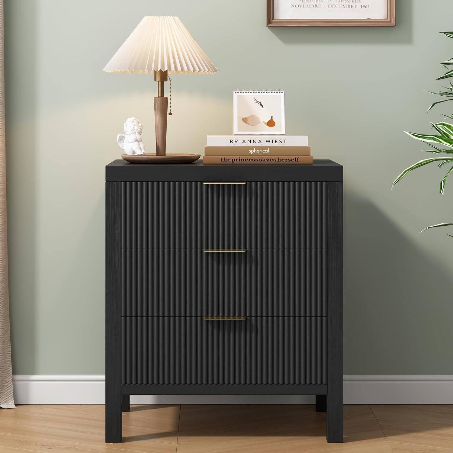 Tall End Table with 3 Drawers, Wooden Bedside Storage for Bedroom or Living Room, Black