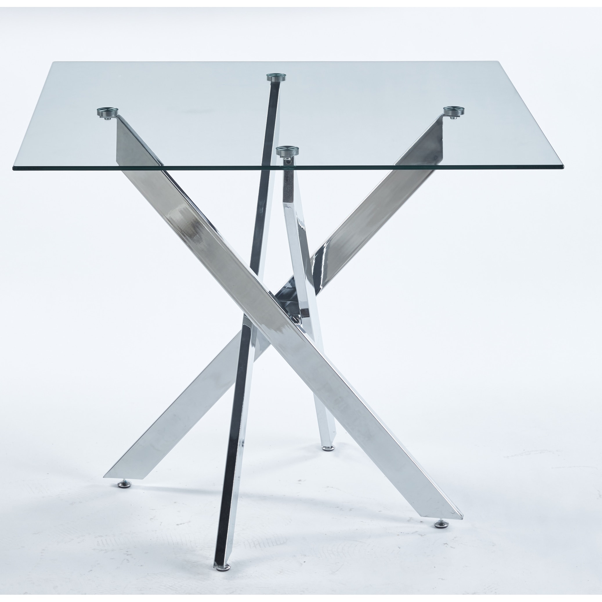 Modern Square Glass Dining Table for 4, Kitchen Table with Tempered Glass Top & Chrome Metal Legs for Dining Room, Living Room
