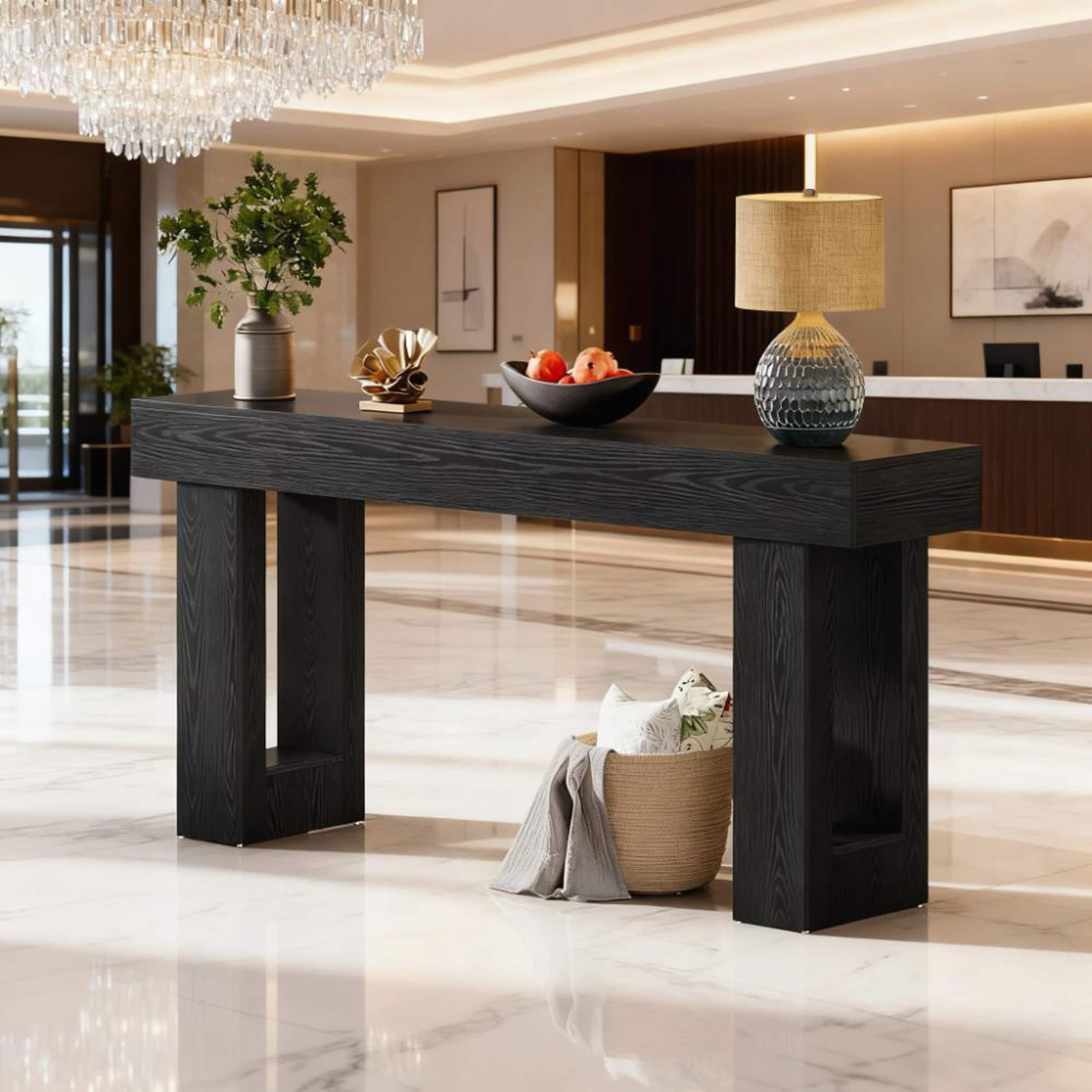63" Long Wooden Console Table Entryway Table with 3 Storage Shelves and Open Storage Shelf, Easy Assembly Hallway Tables