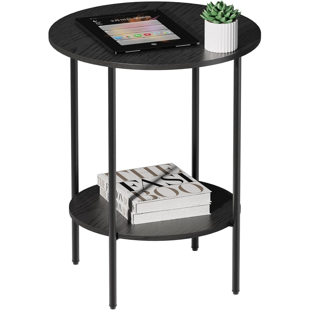 Round End Table, 2-Tier Industrial Side Table with Metal Frame & Storage Shelves