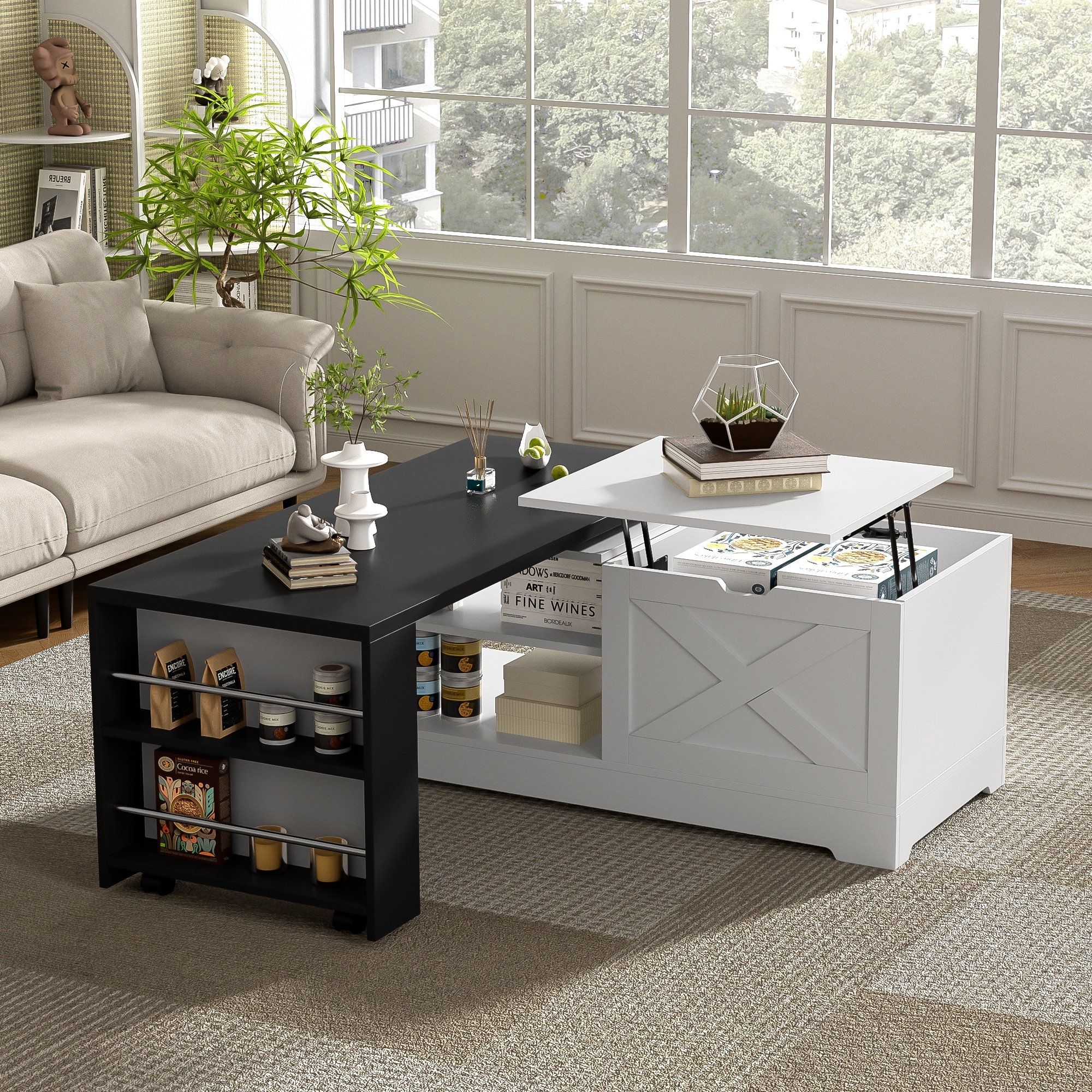 Extendable Lift Top Coffee Table with Hidden Storage and Open Shelf, Farmhouse Wood Sofa Table Cocktail Table with Barn Doors