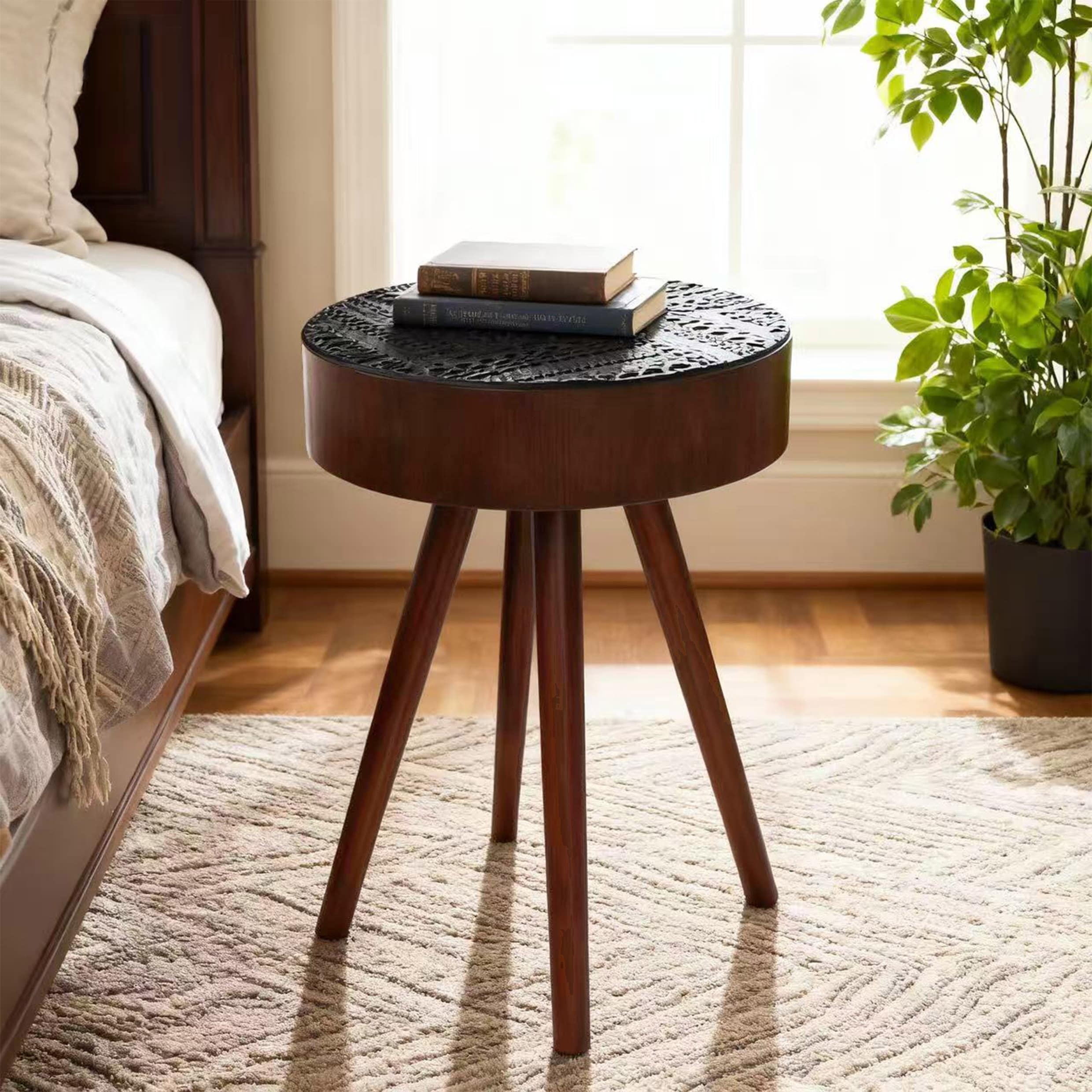 15.7'' Small Accent Table with Solid Wood Legs, Distressed Brown & Black
