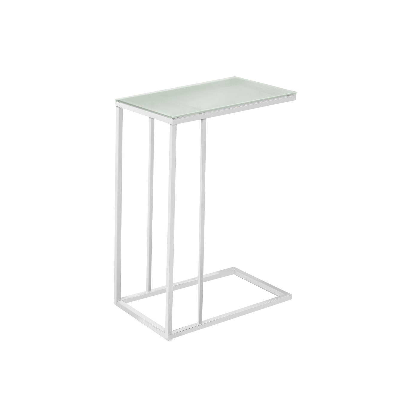 Accent Table, C-shaped, End, Side, Snack, Living Room, Bedroom, Tempered Glass, White Metal, Contemporary, Modern