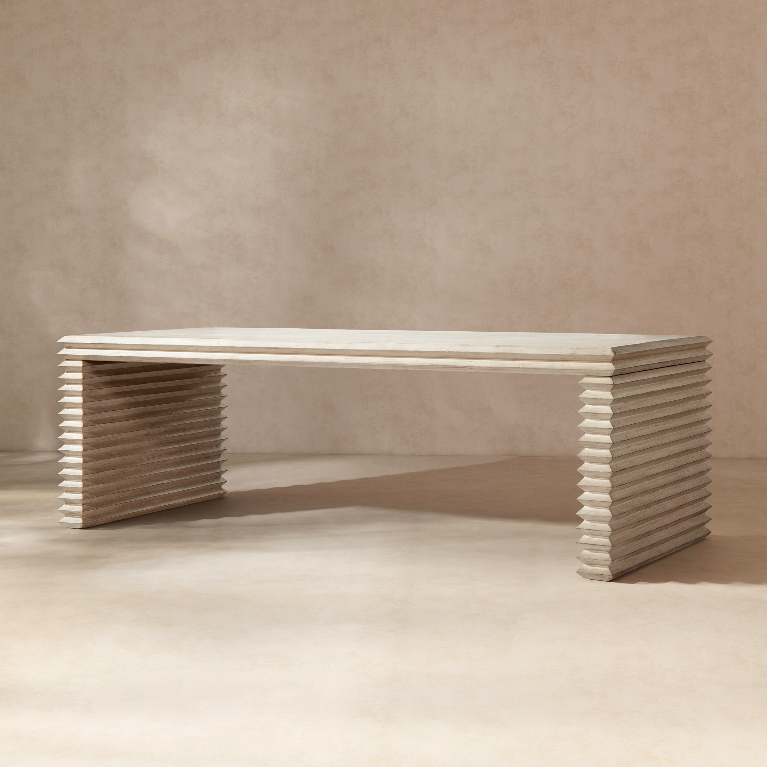Jennifer Taylor Home Veda 94" Reclaimed Wood Stacked Geometric Waterfall Dining Table - Whitewashed Natural