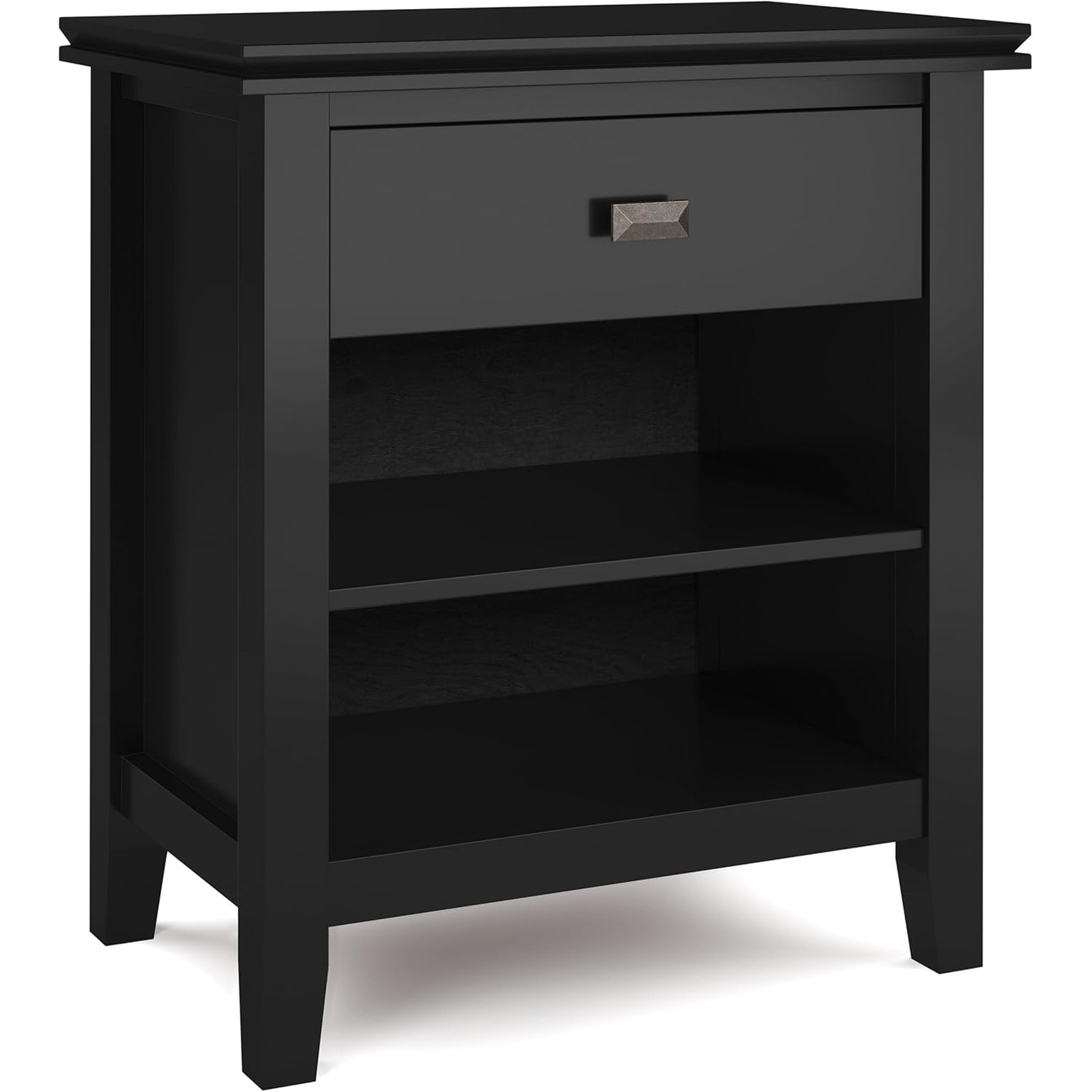 Artisan Solid Wood 24 inch Wide Contemporary Bedside Nightstand Table in Black for The Living Room and Bedroom