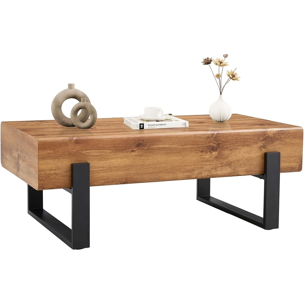 47.24'' Rustic Rectangle Coffee Table MDF Desktop with Metal Legs for Living Room Dining Room Bedroom Office
