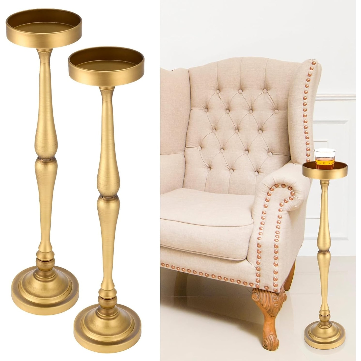 Round Martini Drink Table for Small Spaces - Nightstand, Side Table, Vintage Metal Pedestal