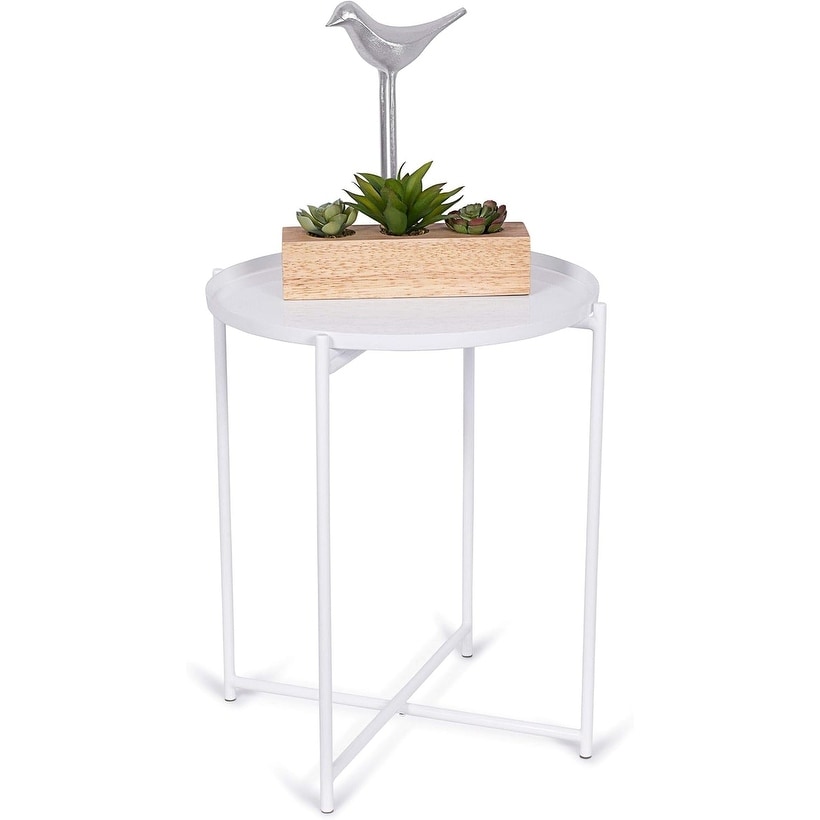 Folding Side Table with Tray - Foldable Nightstand for Living Room, Bedroom or Patio - Serving Tray for Drinks, Food