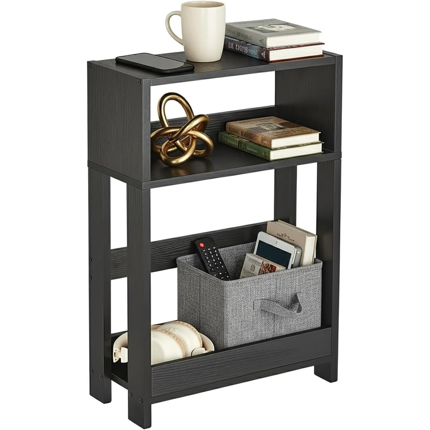 3-Tier Narrow Side Table,Skinny End Table and Bedside Nightstand for Small Space - Black