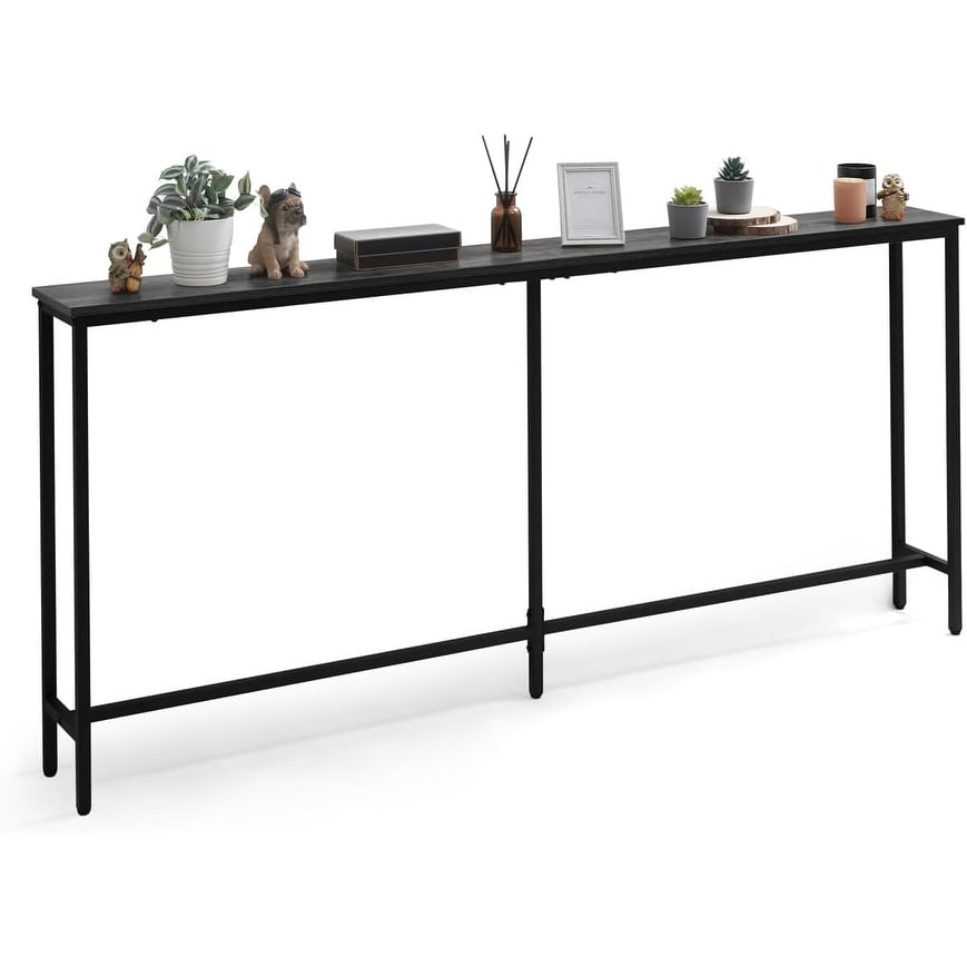 71-inch Narrow Long Console Table for Entryway, Living Room & Hallway, Skinny Plant & Decor Table, Grey Oak