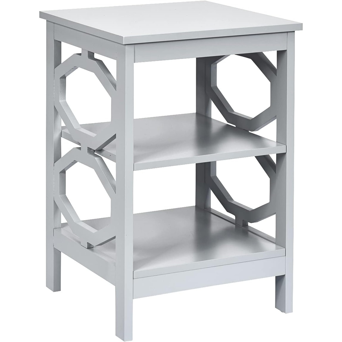 3-Tier Wooden Nightstand with Storage Shelves, Easy Assembly, Grey