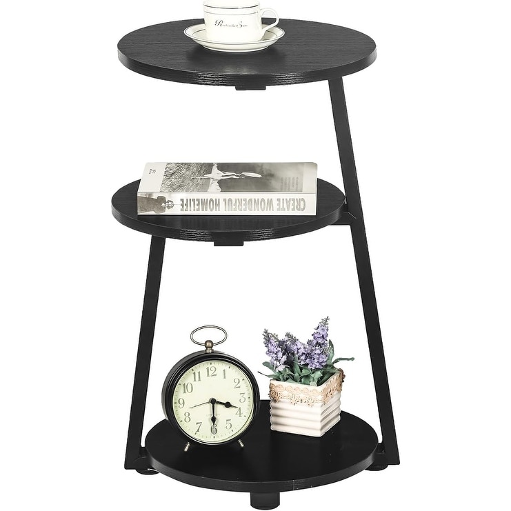 Round Side End Table, 3-Tier Small Bedside Nightstand Coffee Table for Living Room Couch Bedroom Small Spaces, Black