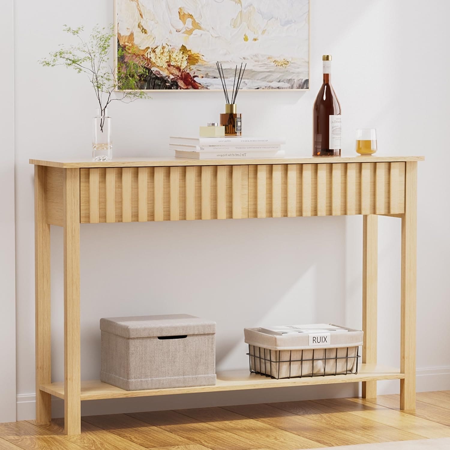 47.2" Boho Entryway Table, Entryway Console Table with 2 Fluted Drawers and Shelf, Sofa Table for Living Room and Hallway (Oak)