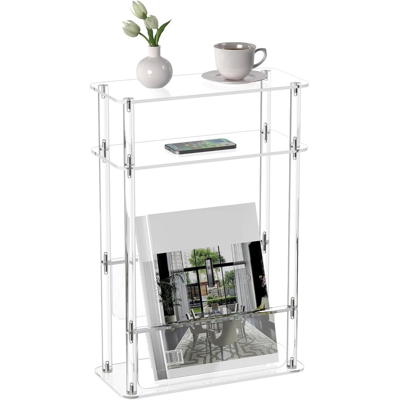 Slim Acrylic End Table with Magazine Holder, 3-Tier Narrow Design for Small Spaces, Clear