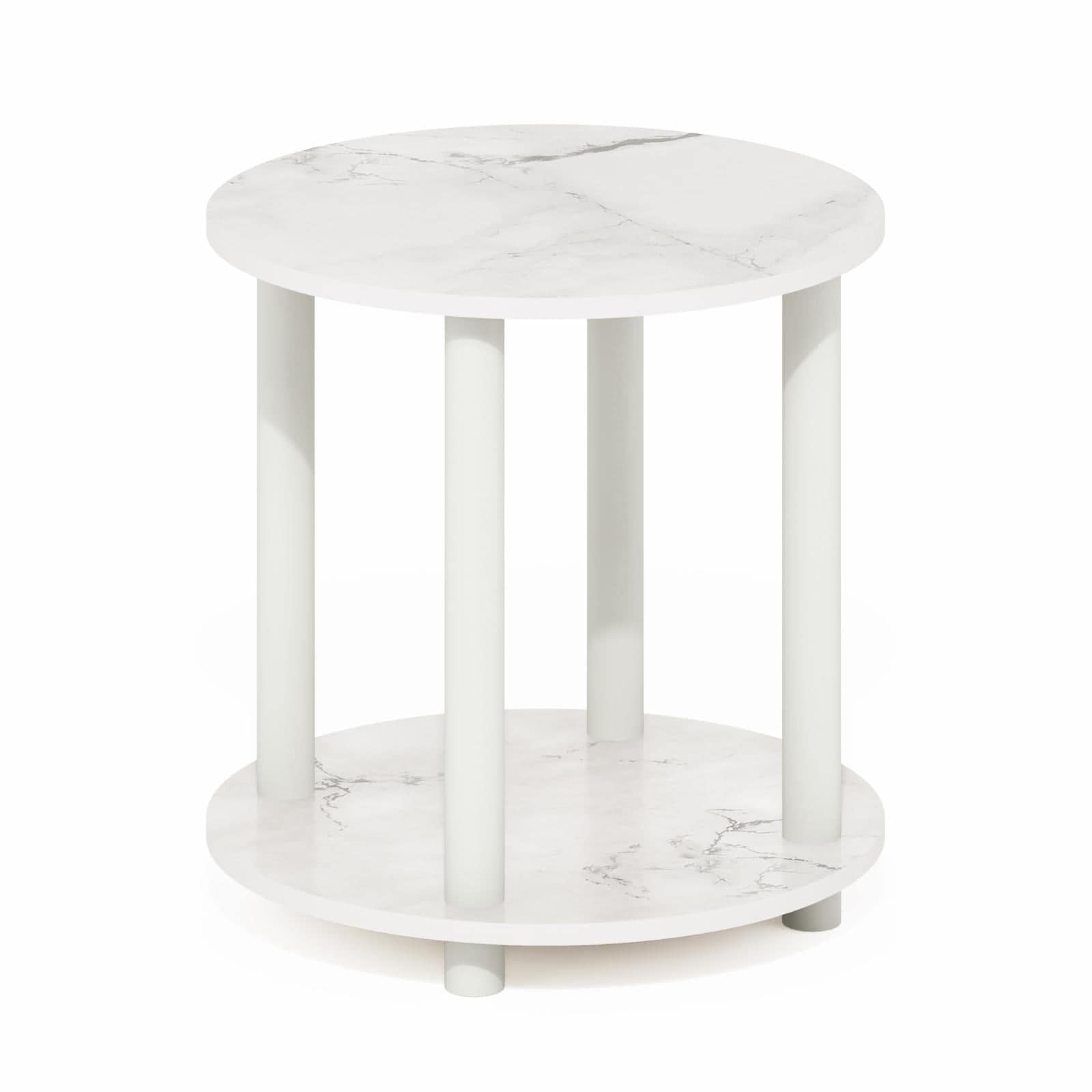 15.5-Inch 2-Tier Round End Table with Marble Top and Safety Edges
