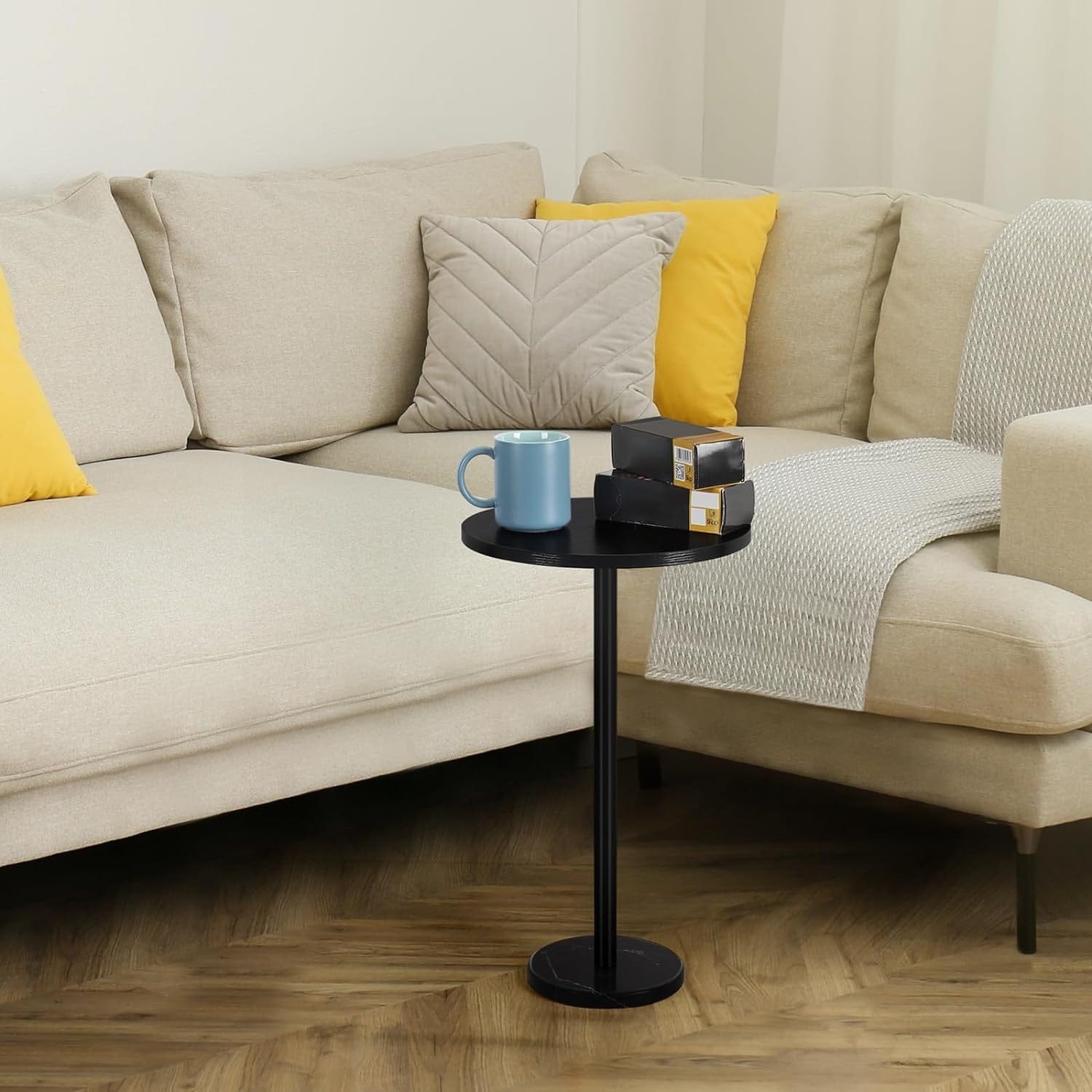 Round Marble Base Nightstand Table with Single Leg, 265lbs Capacity