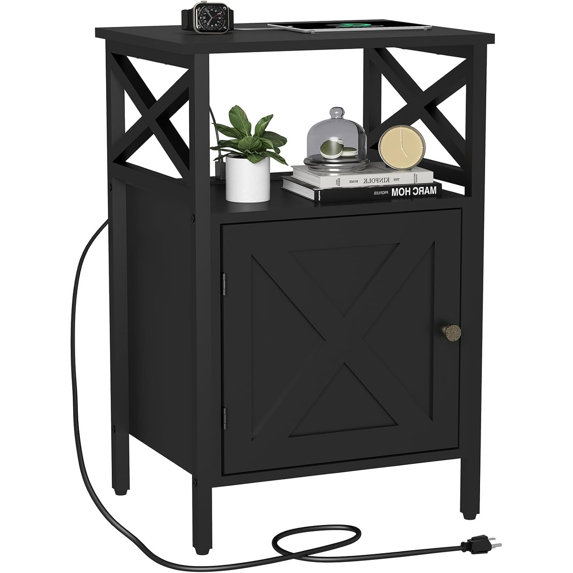 End Table with Charging Station, 2-Tier Storage & USB Ports, Sofa Side Table for Bedroom or Office