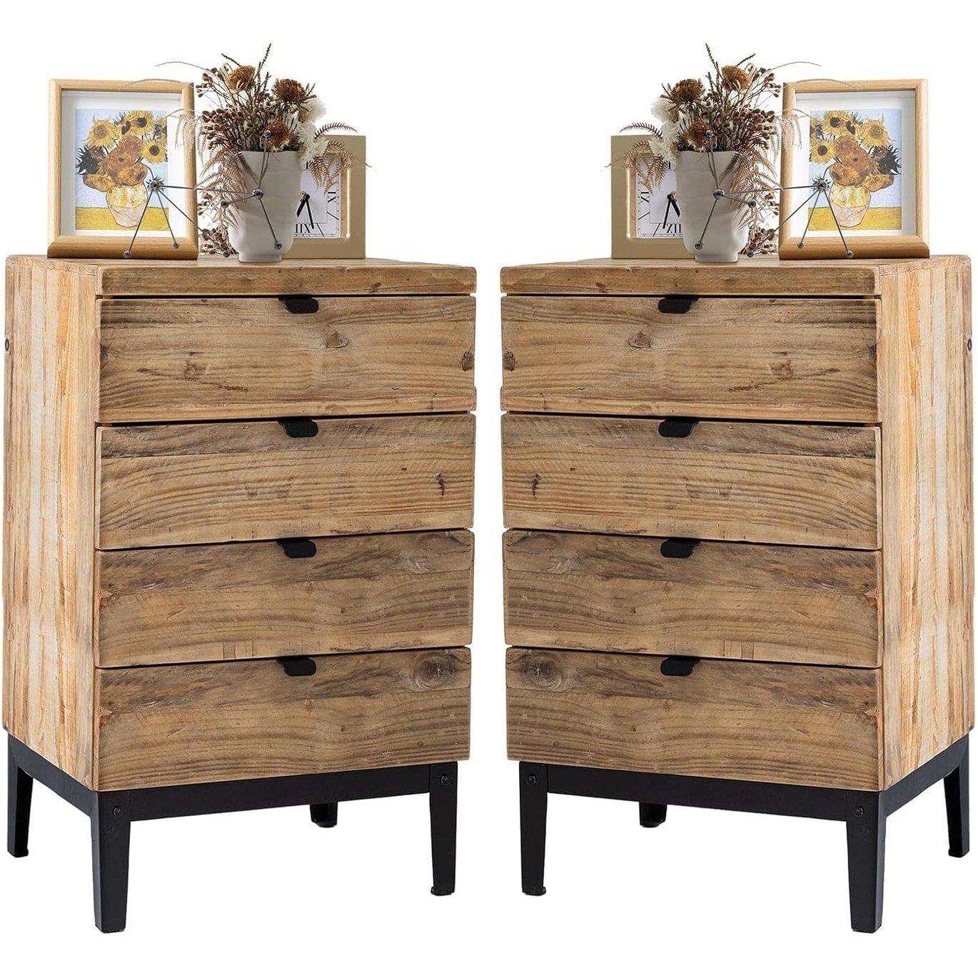 Rustic Wood Nightstand with 4 Drawers, Handmade Farmhouse Bedside Table for Living Room or Hallway, Set of 2