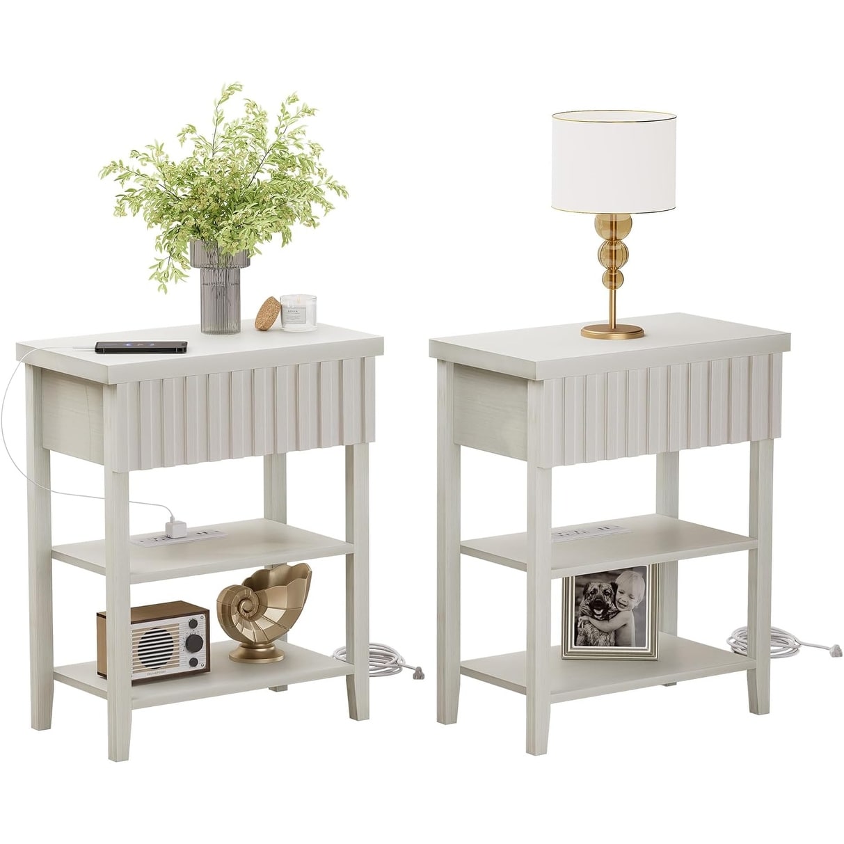Modern Nightstand with Charging Station, Fluted Drawer, and Multi-Functional Storage