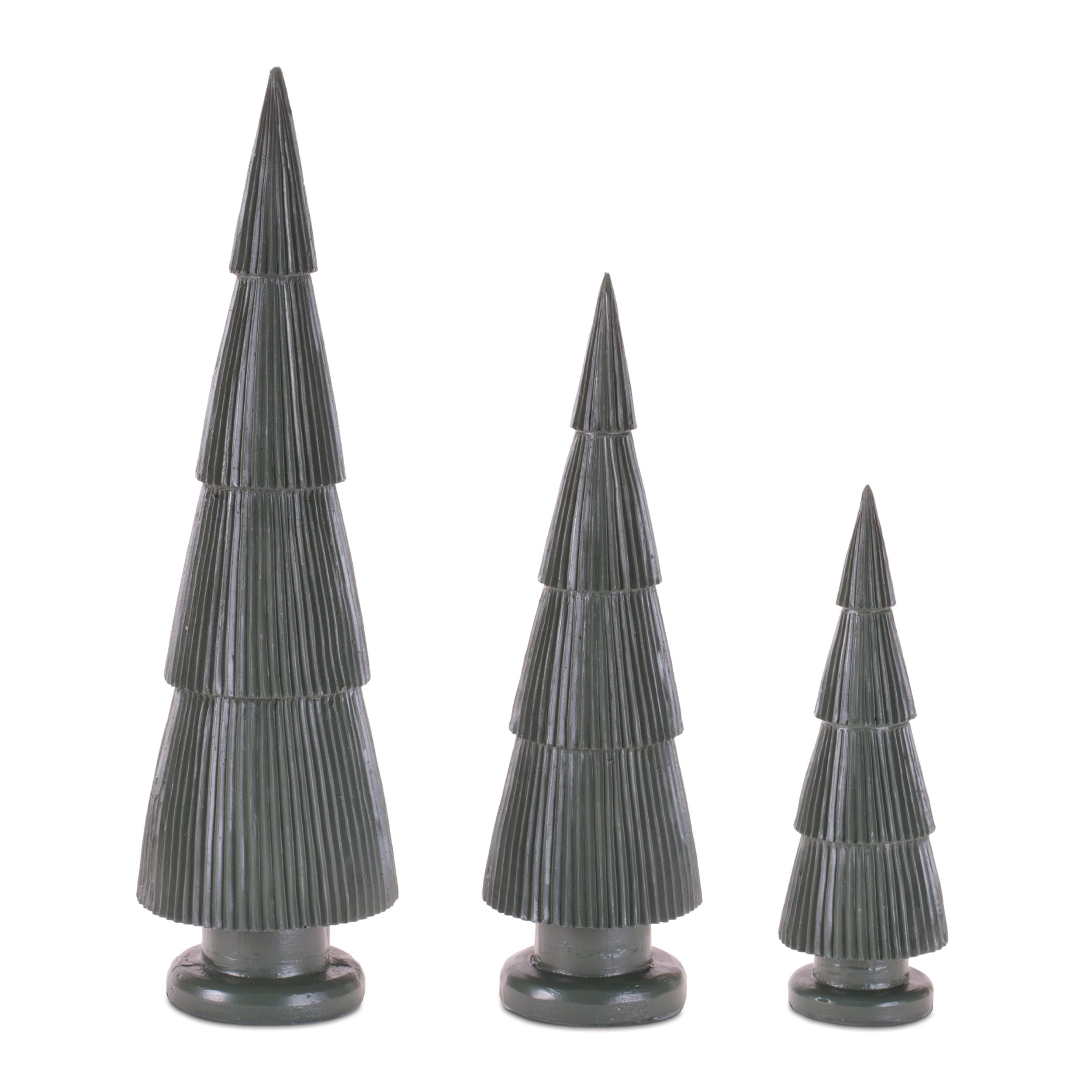 Green Ribbed Resin Christmas Tree (Set of 3)