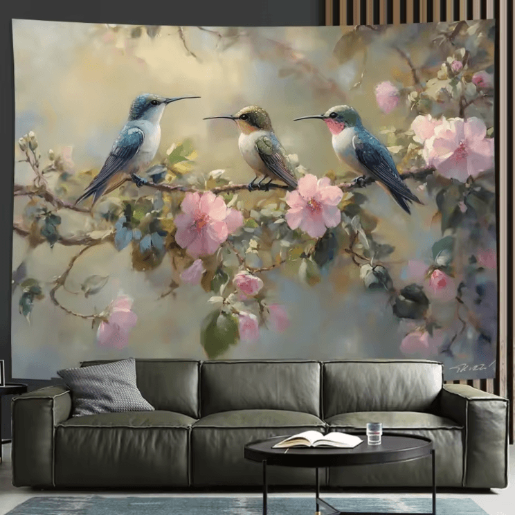 Hummingbird Wall Tapestry Floral Wall Hanging Nature Bird Decor 70x100cm