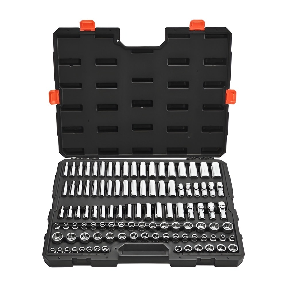Black CR-V Alloy Steel 104-Piece 3/8-Inch Socket Set with Chrome Finish and High-Torque Design - 21.06 x 3.50 x 16.14
