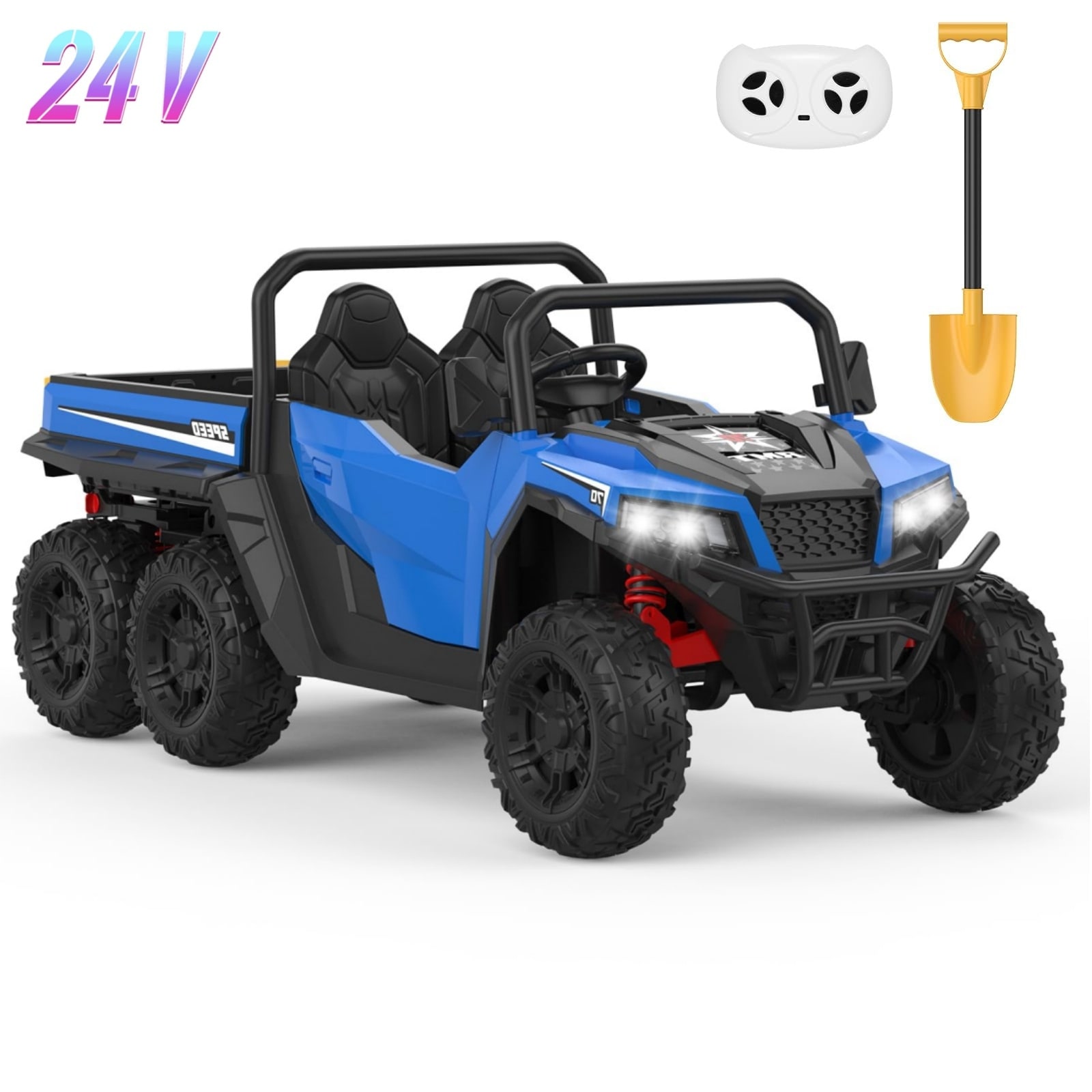 24V 4WD 6-Wheel Electric Ride On Dump Truck with Remote Control, 2 Seater Kids Toy for Big Kids