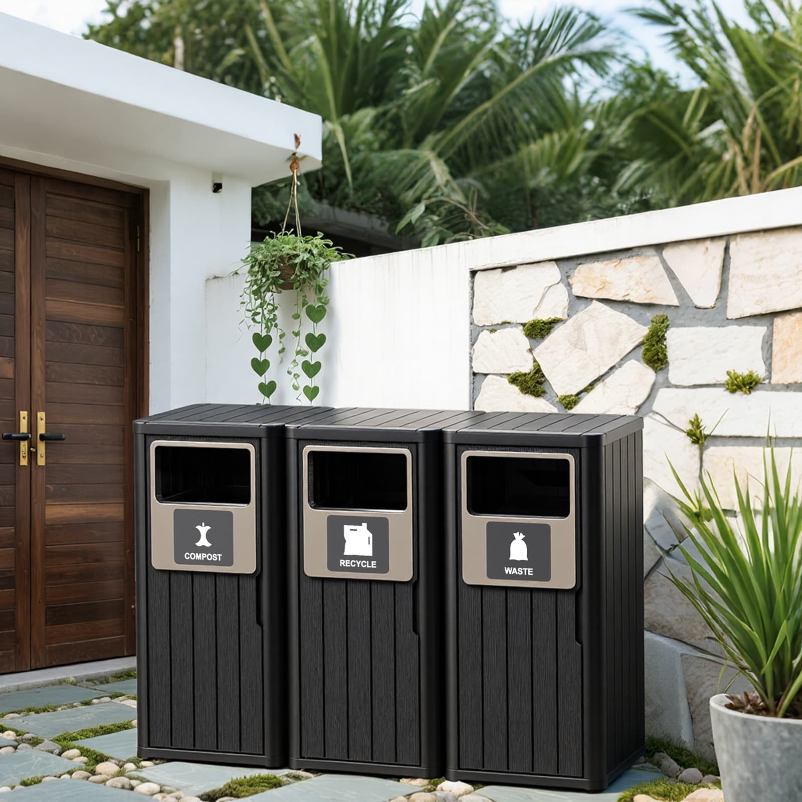 62 Gallon Outdoor Trash Can with Laminated Lid and Drip Tray Waterproof Outdoor Trash Can for Patios, Backyards