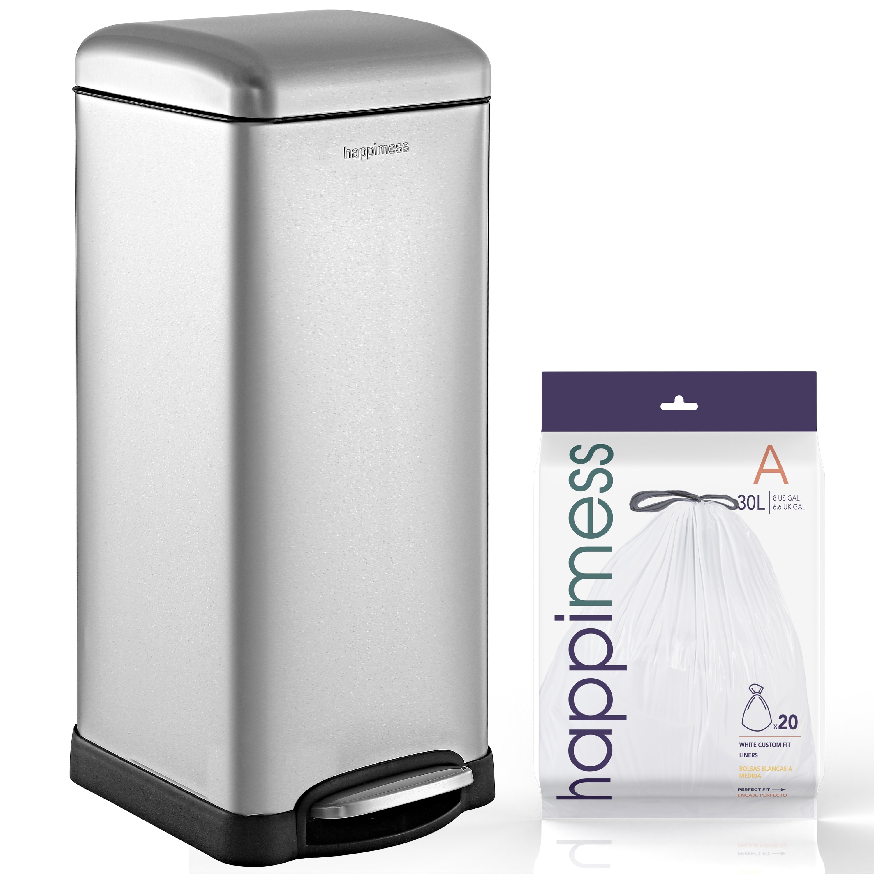 happimess Ashley Rectangular 8-Gallon Trash Can with Soft-Close Lid with FREE Mini Trash Can, Stainless Steel