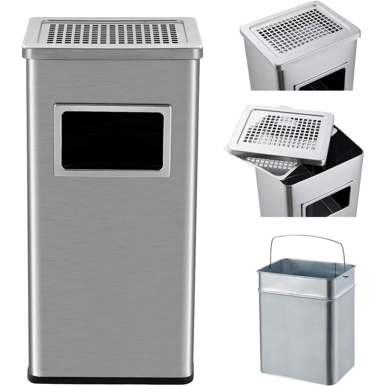 8 Gal Indoor Outdoor Trash Can, Stainless Steel Bin with Lid & Removable Bucket, Ashtray Design for Patio or Yard