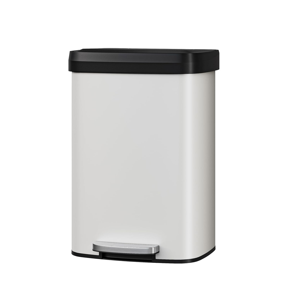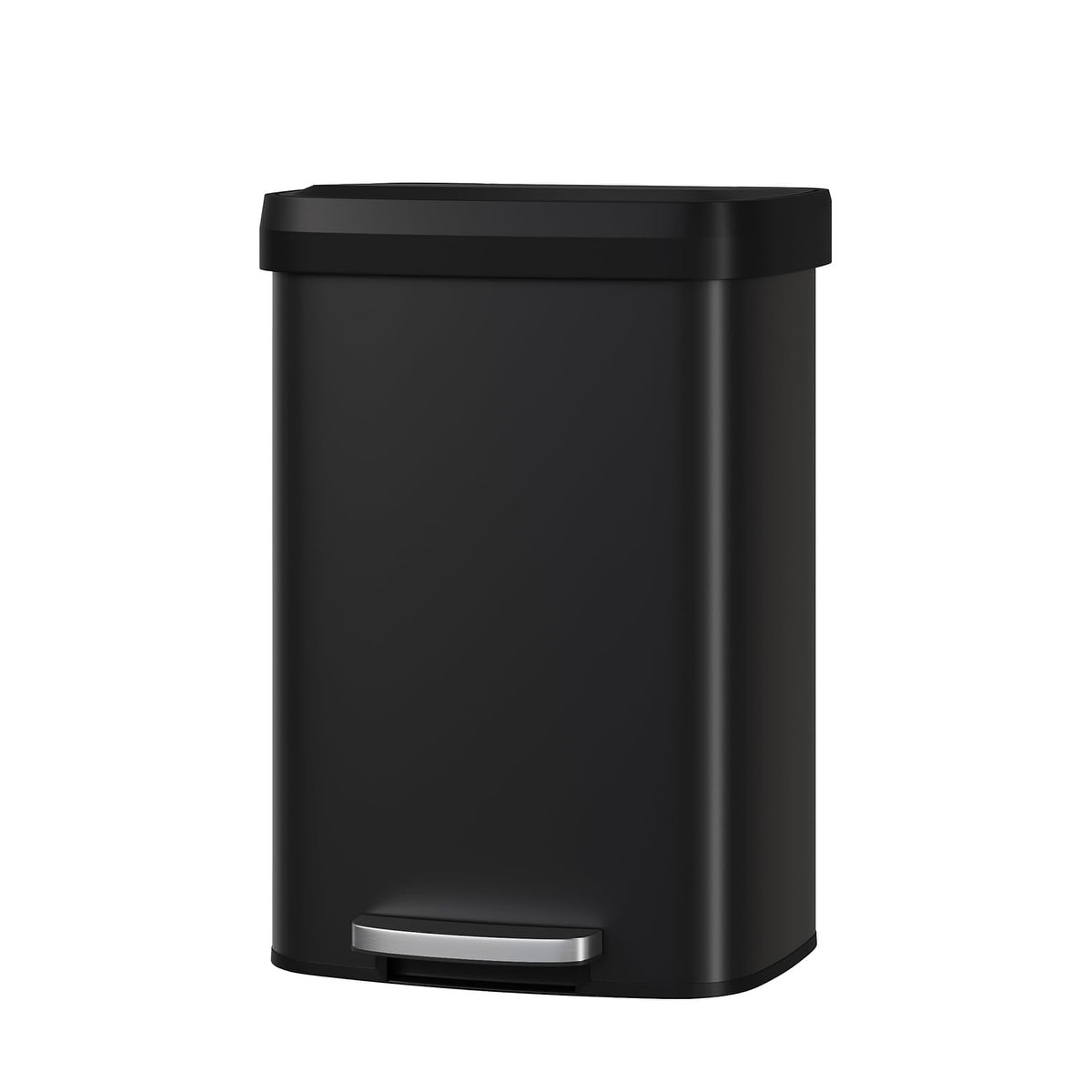 13 Gal Metal Trash Can with Lid, Large Step Bin for Kitchen, Rustproof with Soft-Close Lid & Rear Handle, Black