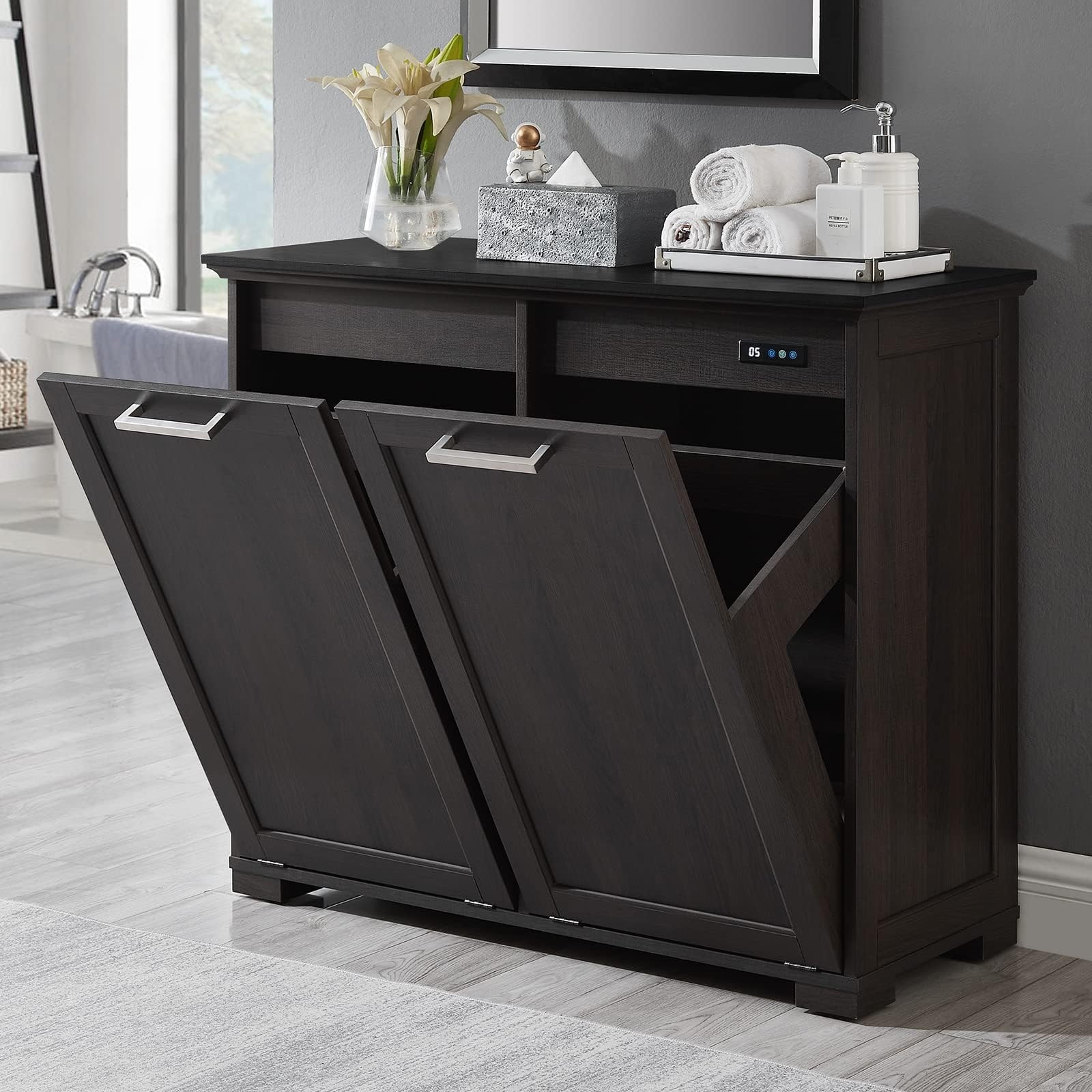 Double Tilt Out Trash Cabinet, Wooden Kitchen Garbage Can Free Standing Holder