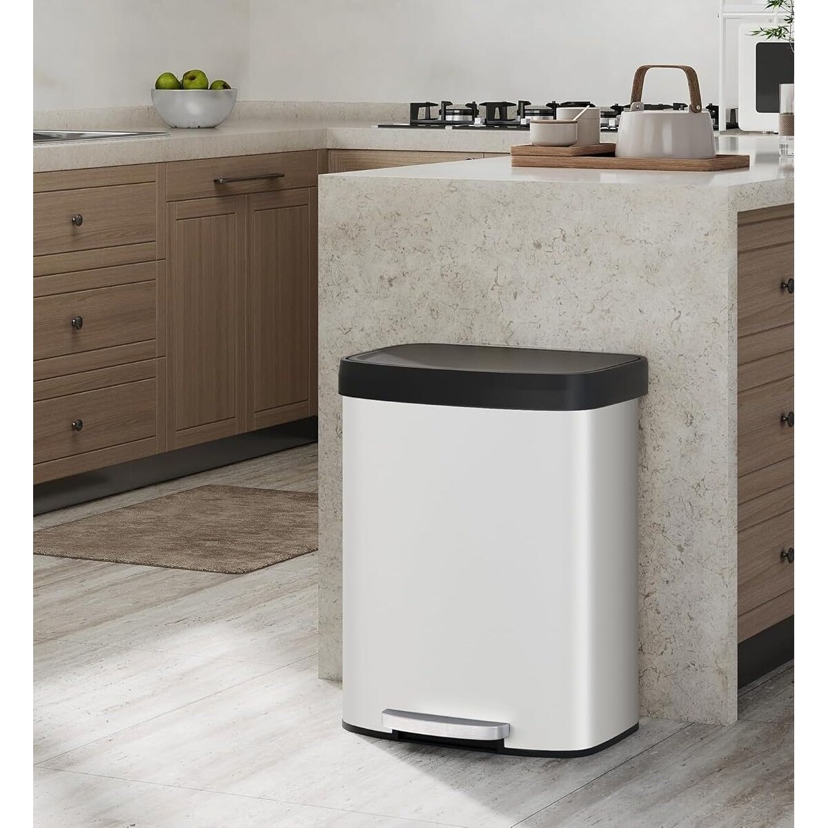 Stainless Steel Trash Can with Soft-Close Lid, Inner Bucket
