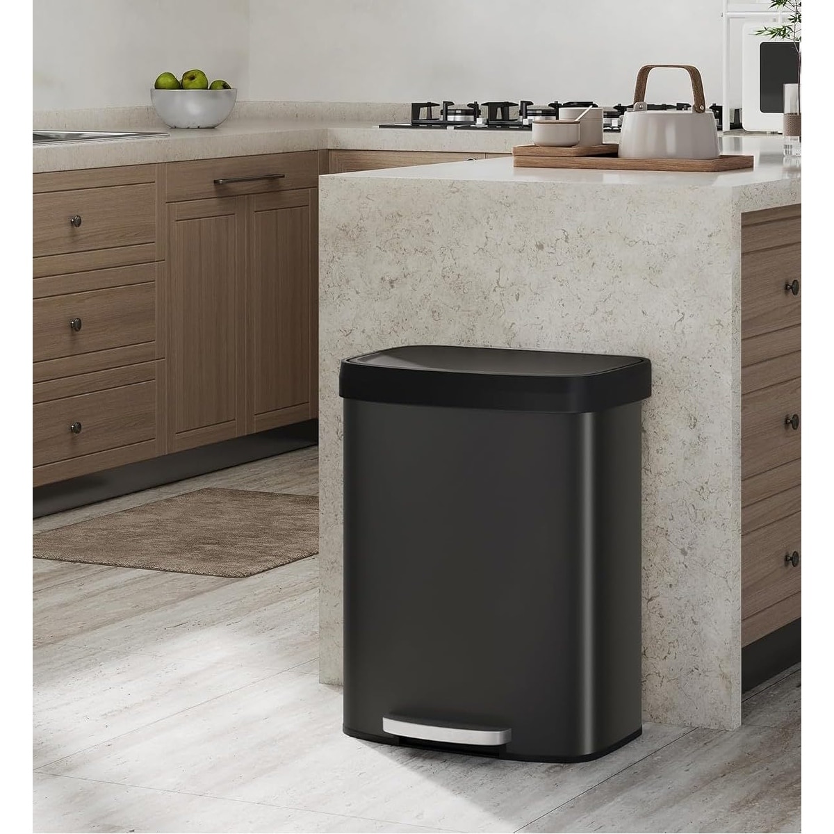 16 Gal Step Trash Can, Stainless Steel Large Capacity Bin with Soft-Close Plastic Lid for Kitchen, Black