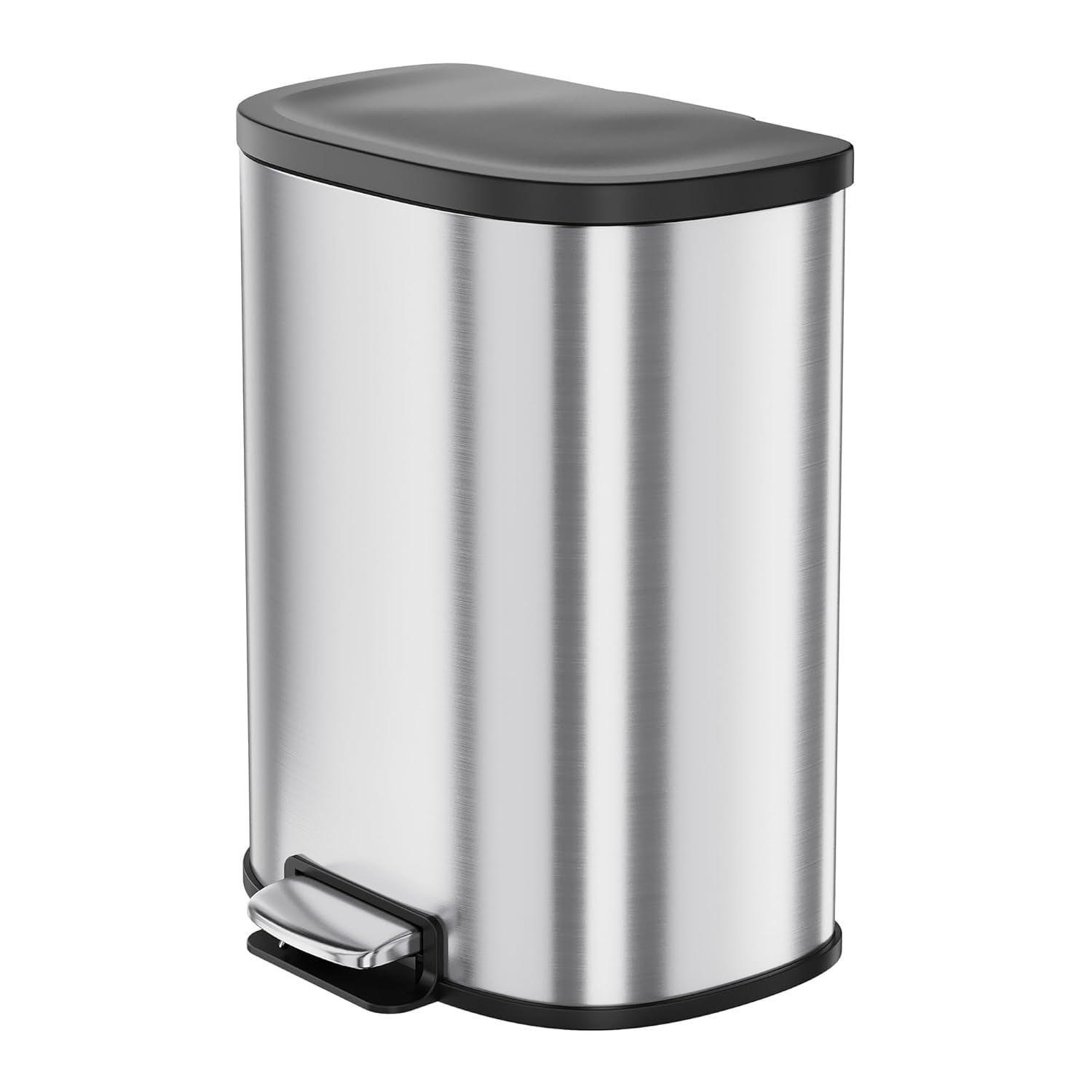13 Gal + 2.6 Gal Step Trash Can Set, Stainless Steel Bin with Soft-Close Lids & Removable Plastic Buckets