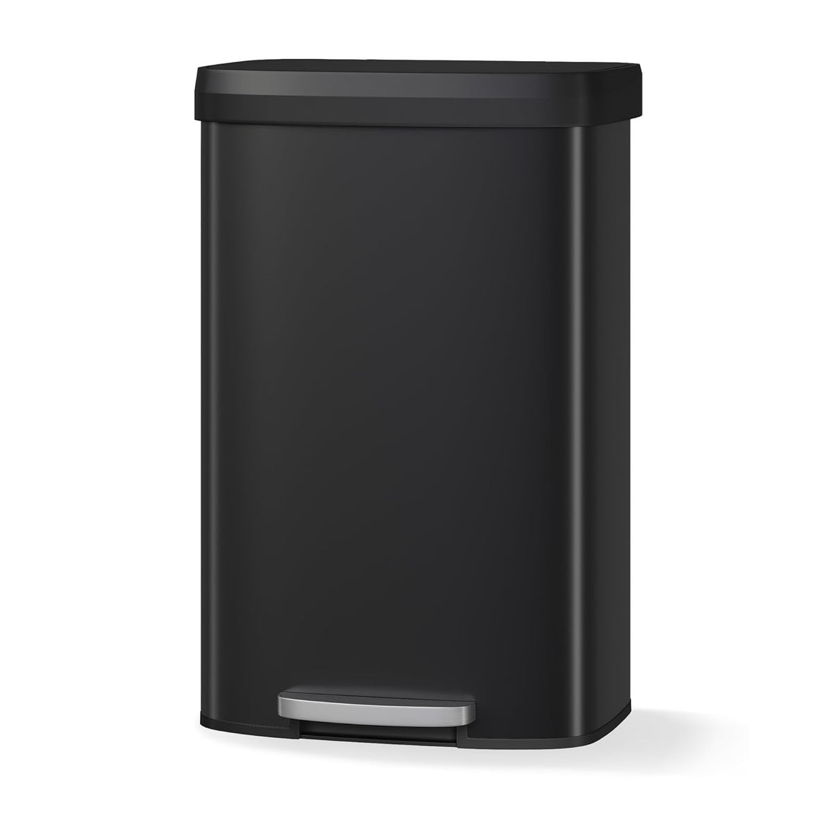 Slim Stainless-Steel Trash Can 12.7 Gallon with Soft Close Lid and Removable Inner Bucket Pedal Control