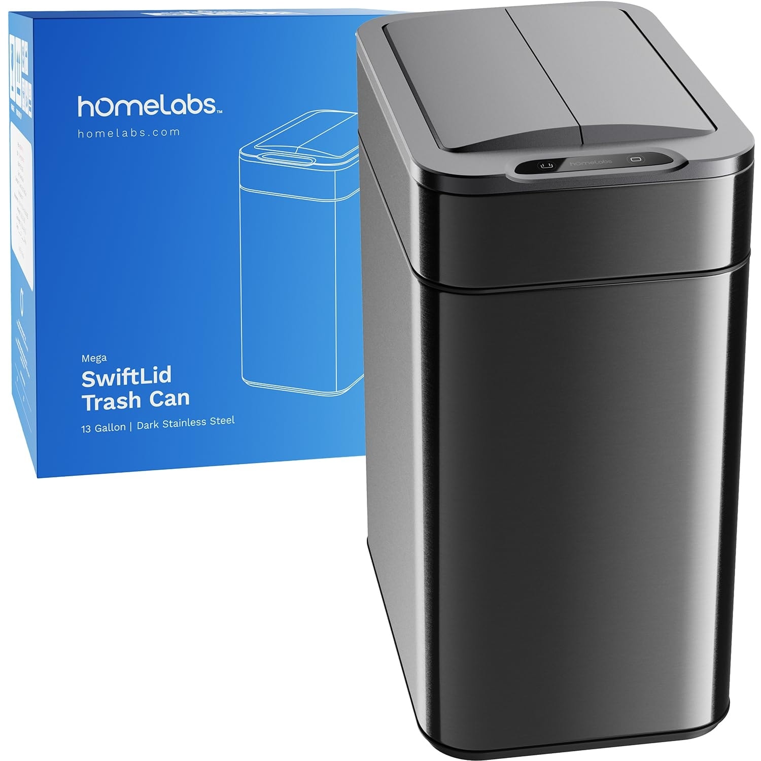 hOmeLabs 13 Gallon Kitchen Trash Can - Retractable Sensor Butterfly Lid, Easy to Clean, Battery-Operated - Dark Stainless Steel