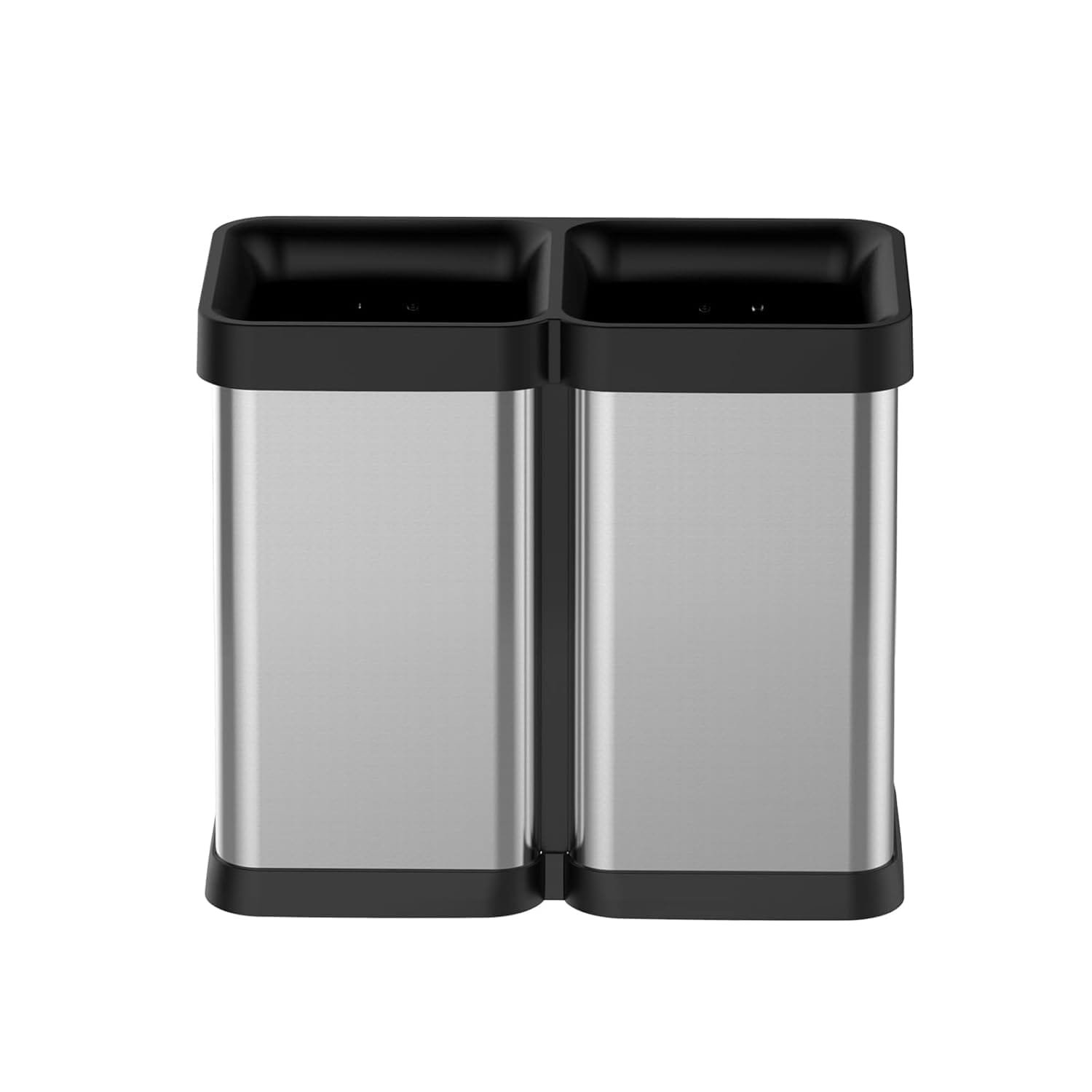2 x 10.6 Gallon Stainless Steel Double Trash Can with Lid for Kitchen