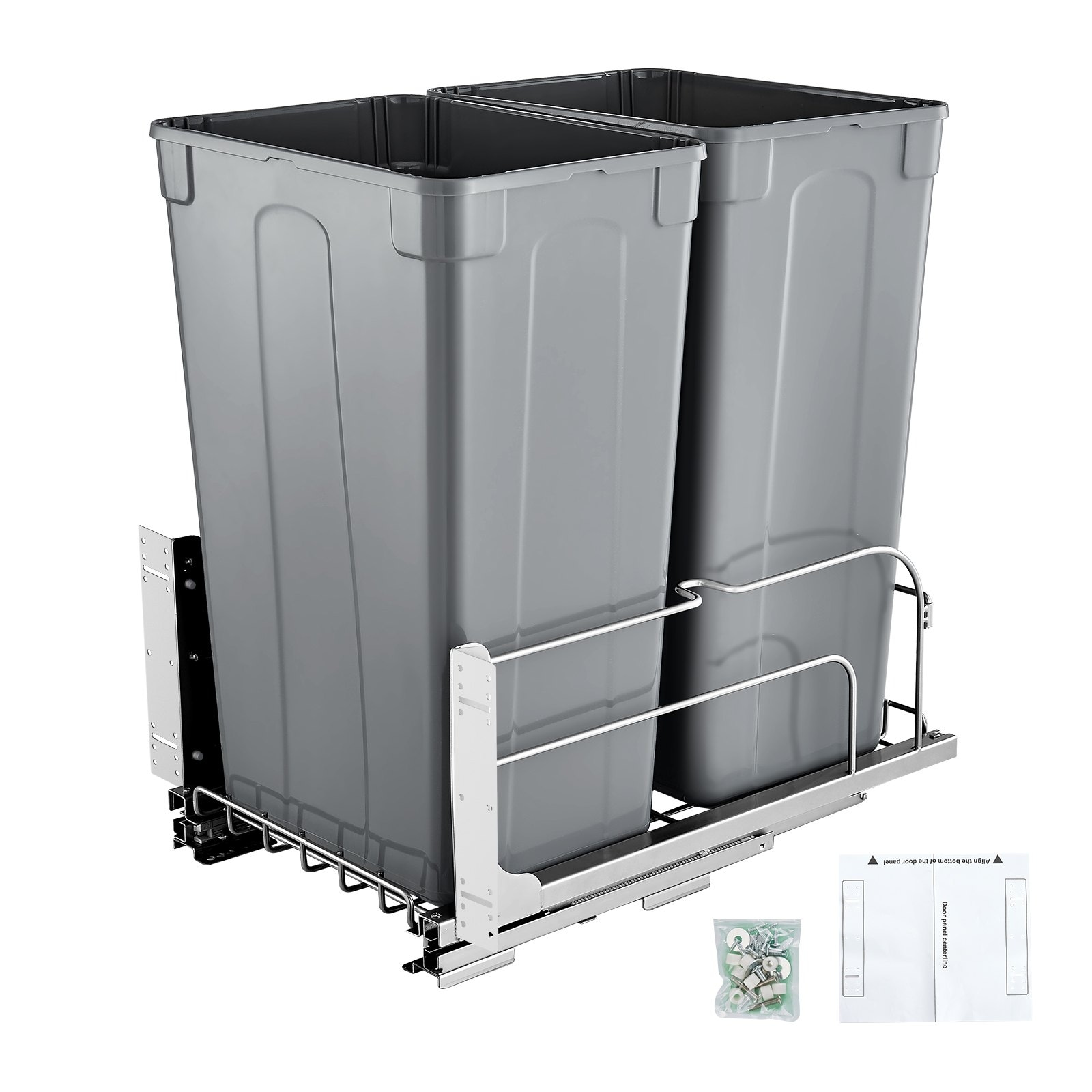 Under Cabinet Pullout Trash Bin with Soft Close System and Dual Bins