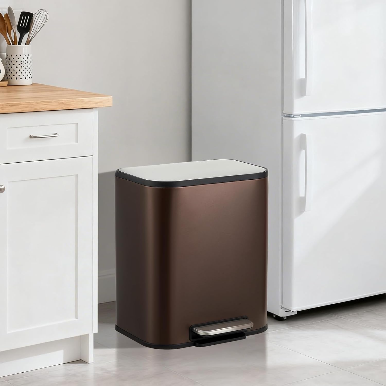 happimess 10.6-Gallon Double Bucket Trash Can with Soft Close Lid