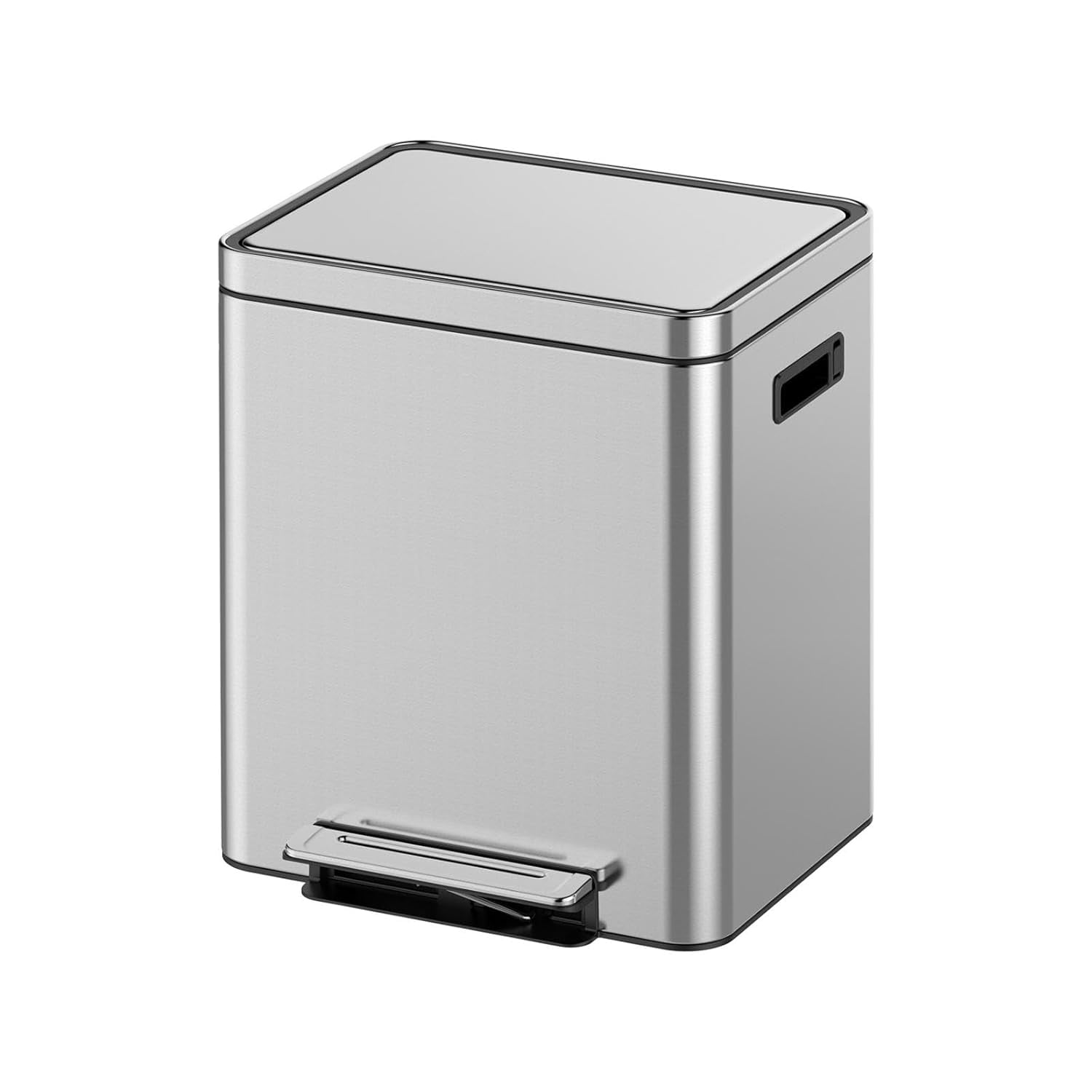 Dual Trash Can, 2×4.75 Gal Stainless Steel Step Recycling Bin with Soft-Close Lid & Foot Pedal for Kitchen